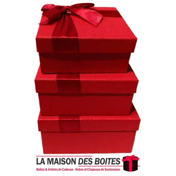 Be the first to review “Lot de 3 Boîtes Cadeaux Carré avec Couvercle & Ruban Satiné – Rouge”